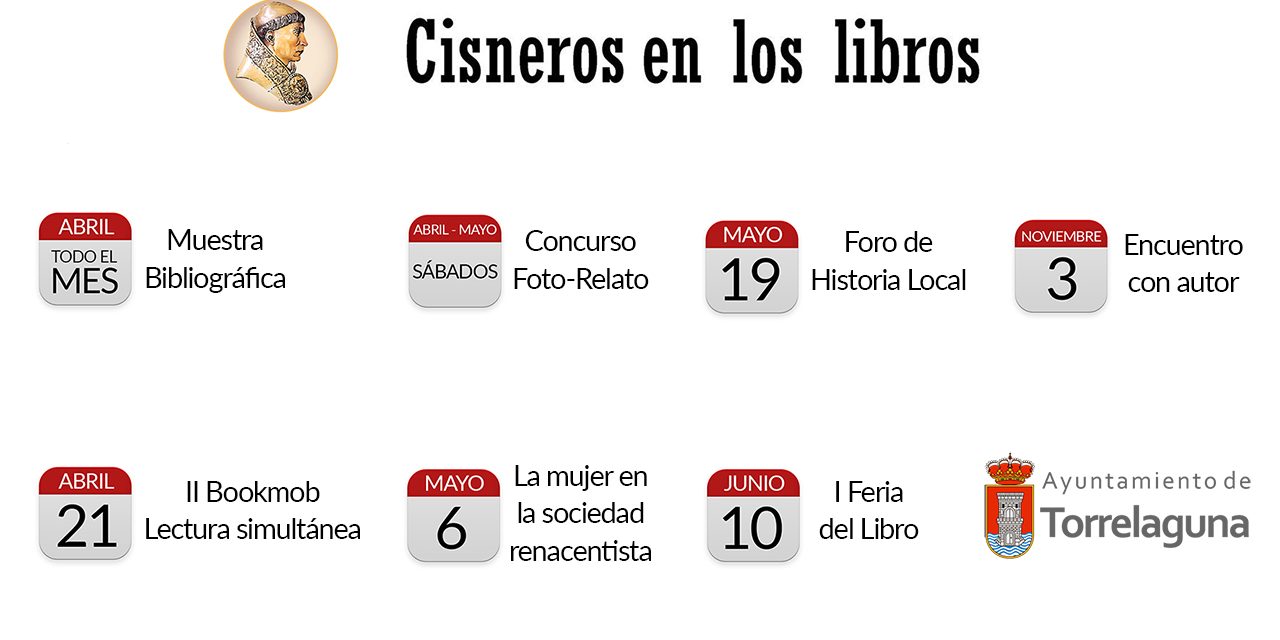 También en abril, se convocará el certamen “Torrelaguna de Cisneros”, concurso de relato en castellano en cualquier género expresivo (narración, cuento, canción, poema, ensayo…), contextualizado en Torrelaguna y basado en la época de Cisneros. Irá acompañado de fotografías, para lo que impartirá un taller gratuito de narración fotográfica en la Casa de la Cultura durante varios sábados de abril (22 y 29) y mayo (6, 13 y 20), en horario de 11 h a 13 h.