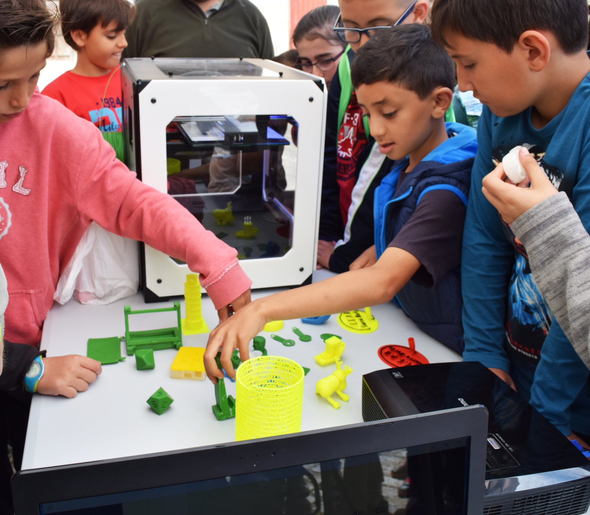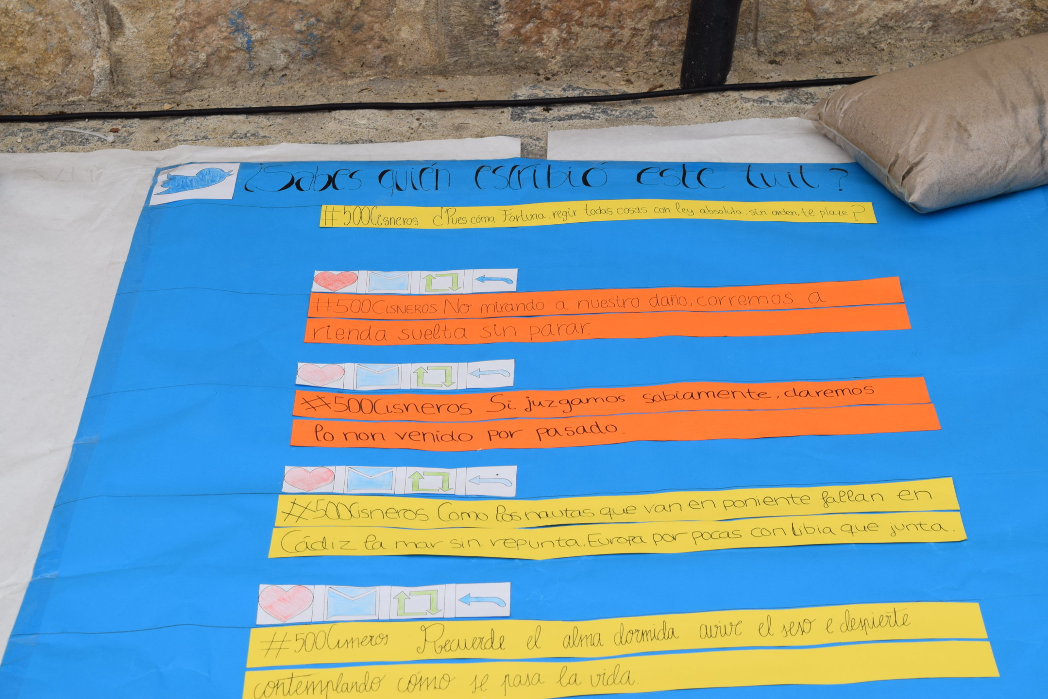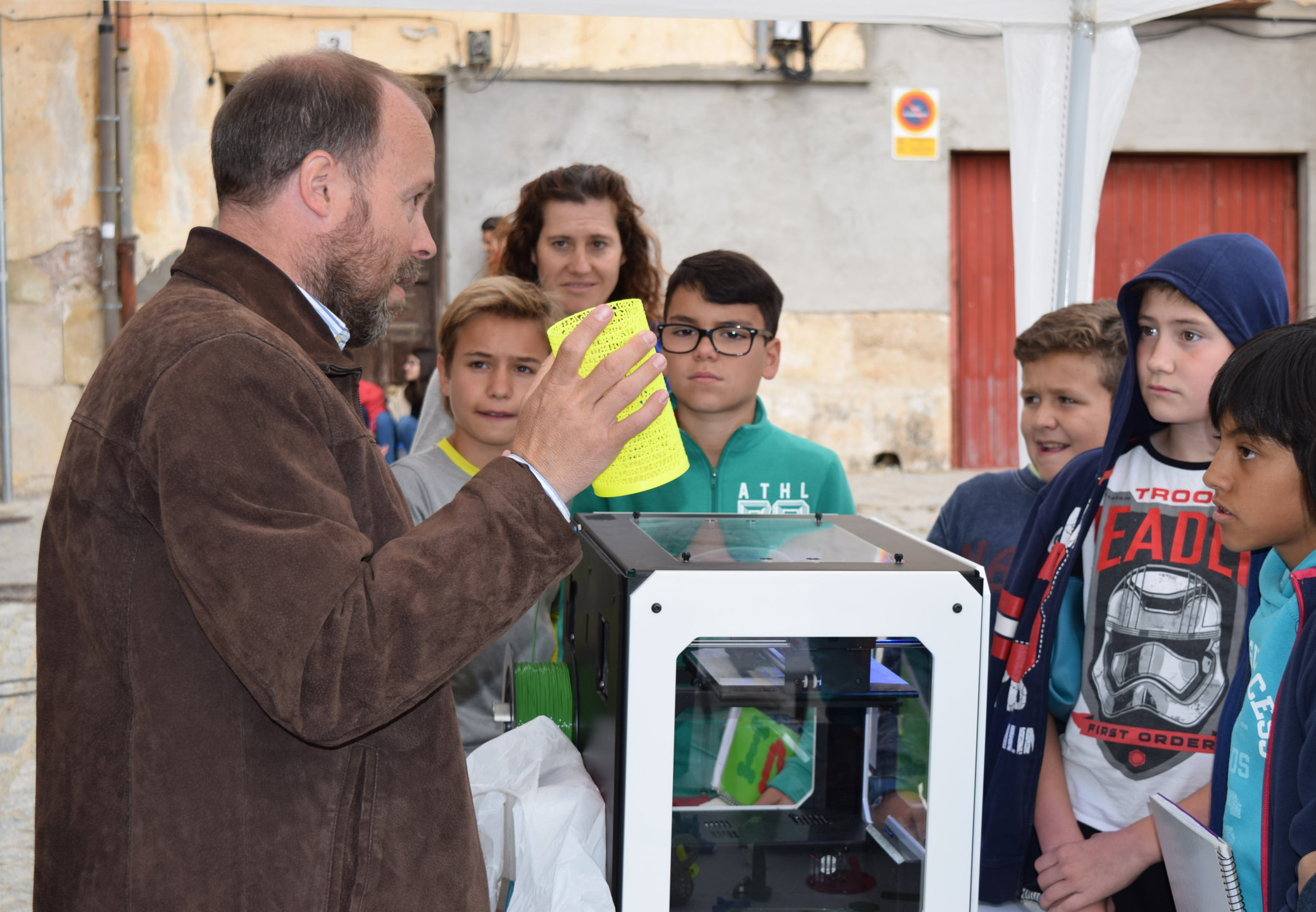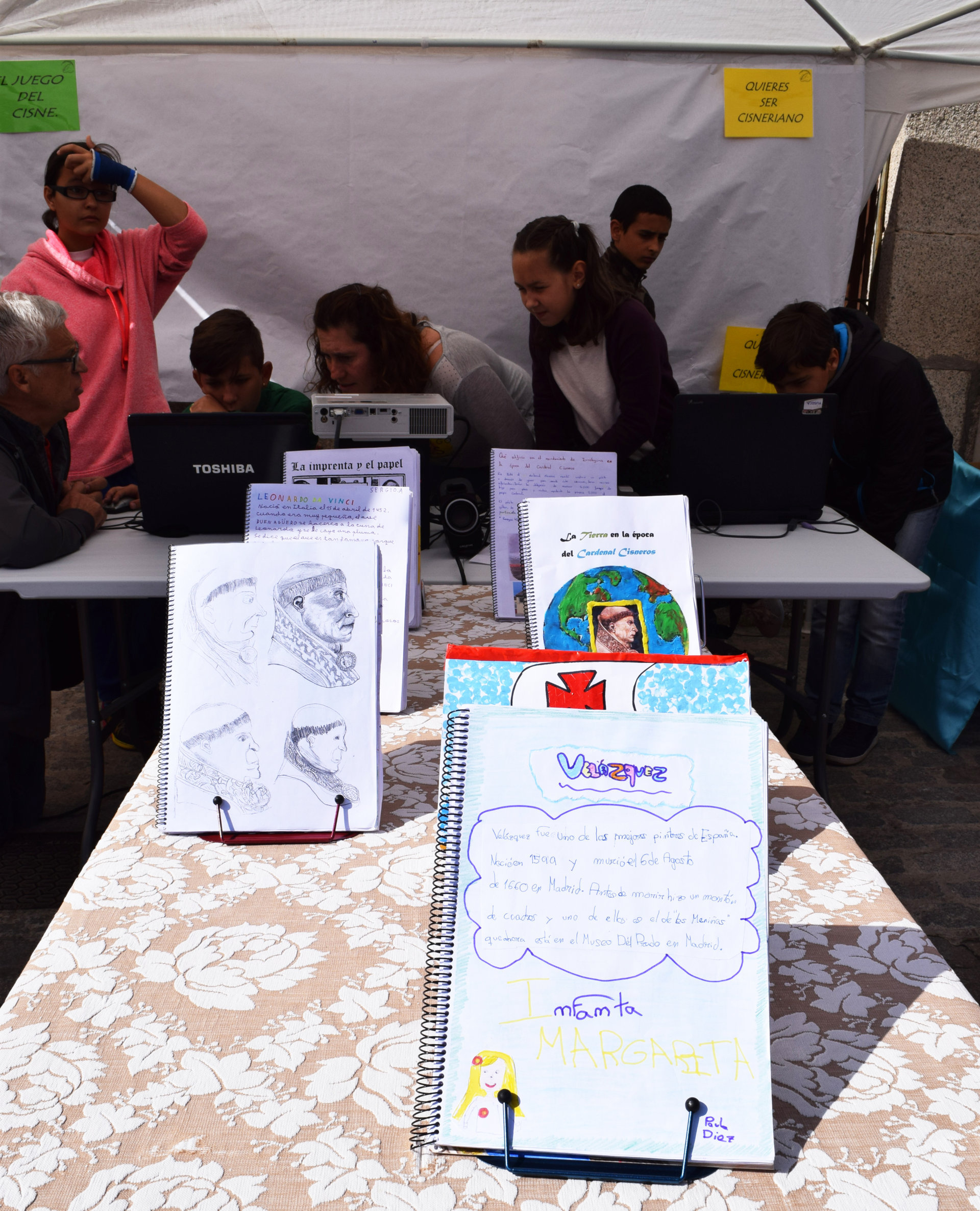 Y este miércoles, 26 de abril, hemos podido ver algunos de los resultados con la muestra expuesta en la Plaza Mayor para dar a conocer los trabajos realizados por los alumnos en las aulas. Una Jornada Intercentros que también ha contado con distintos talleres (caligrafía medieval, imprenta manual, brújulas, realidad aumentada, pintura al aire libre, pasacalles musical, robótica, impresión 3D…) con el fin de destacar los cambios tecnológicos vividos en la época de Fray Francisco y su paralelismo con la era actual.